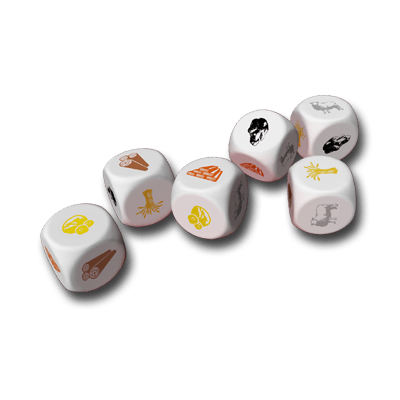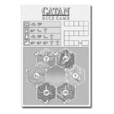 Send your best Vikings into battle! Collect cards with the right characters from Norse mythology to make up your hand and surprise your opponents. In the dice game version of CATAN, you also build settlements, roads, cities, and knights. Here, however, building doesn't mean placing wooden or plastic game pieces on a game board. Instead, each player has a sheet depicting a smaller version of the island of Catan. You build by filling in the respective symbols for roads, knights, settlements, and cities. Building a road, settlement, or city costs the same resources as in the big brother version of the game, but the way you obtain the required resources is completely different. On your turn, you may roll 6 special dice up to three times. After each dice roll, you may either set aside part of the dice or roll all dice again. Each side of a die depicts one of CATAN's resources: brick, lumber, wool, grain, ore, or gold.