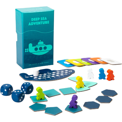 In this powered-up Deep Sea Adventure, players roll 3 dice, boost and move their pieces deeper into the sea, trying to return safely with more treasure than anyone else. Greedy explorers are riding in a submarine together, searching for treasure in the deep sea. With their diving suits on, and brand new boost capability, the explorers eagerly begin their search for treasure. However, their beat-up submarine has only a single air tank for which they all must share. All it takes is one reckless explorer to endanger the lives of everyone else. Can the explorers make it back safely to the submarine with their lives and treasure intact?