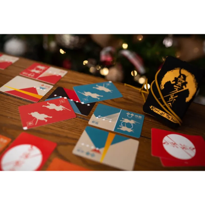 Two samurai face each other on the cliff's edge. Cloudy skies darken the night. The moon breaks as through as they strike. Kiri-ai: The Duel is an enthralling battle between two players, each with a hand of cards that represent their movements and attacks on the battlefield. The fight happens in a narrow lane where combatants edge forward and back in a deadly dance. During each round, opponents will select one movement or attack and then reveal them simultaneously before resolving them. Advance or retreat. Strike high or low. The first samurai to score two hits wins!