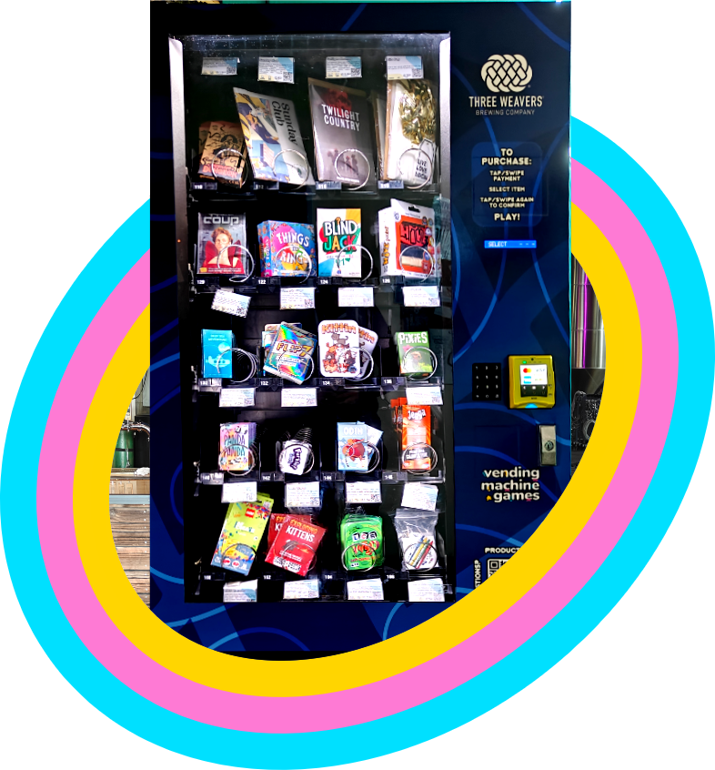Welcome to vendingmachine.games, your go-to vending machine business bringing bite-sized fun and creativity to unexpected places! We specialize in stocking small card games, indie RPG zines, and unique tabletop gaming experiences in high-traffic, high-energy locations like colleges, airports, and breweries. Whether you're a student taking a study break, a traveler looking to pass the time, or a beer enthusiast seeking your next game night hit, we’ve got something for everyone.